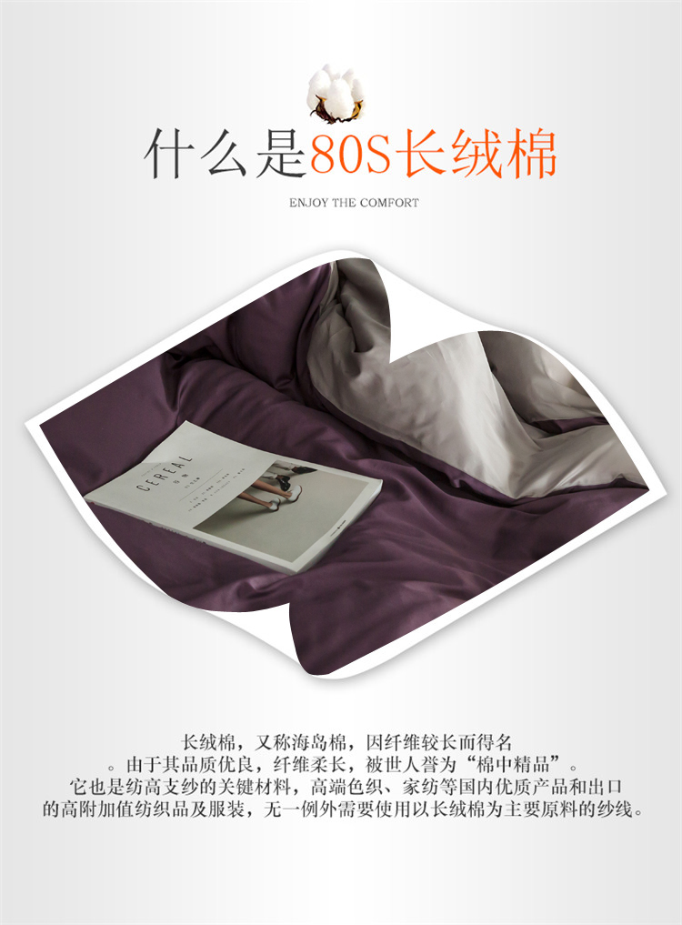 出口欧美80支埃及长绒棉纯棉四件套贡缎全棉纯色简约床上用品1.8m