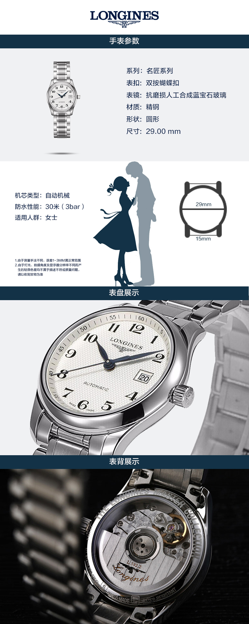 LONGINES/浪琴 名匠系列 自动机械 女士腕表